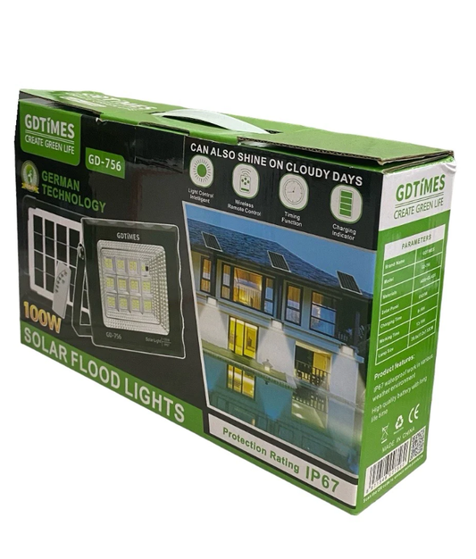 Reflector Solar LED 100W con Control Remoto – Resistente al Agua – Iluminación Automática