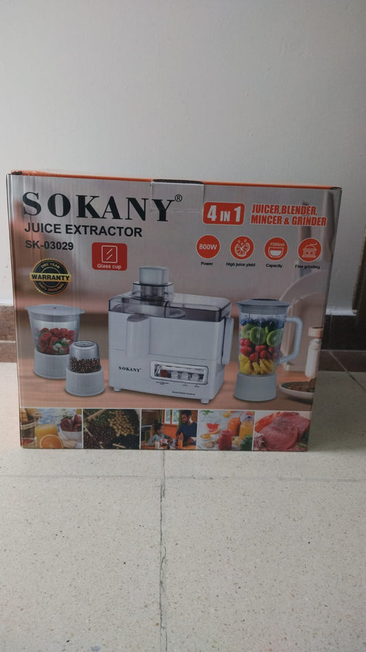 🧃 EXTRACTOR 4 EN 1 SOKANY CON VASOS DE VIDRIO : LICUA + EXTRAE + PICA + MUELE
