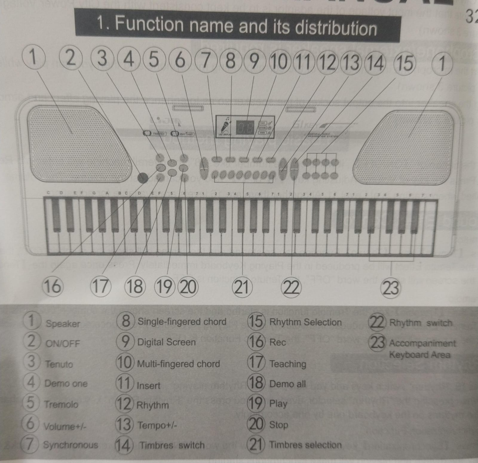 - Funciones: REC / PLAY / Teaching / Tremolo / Tenuto / Insert / Tempo / Volume