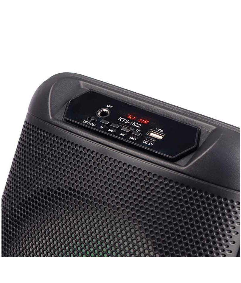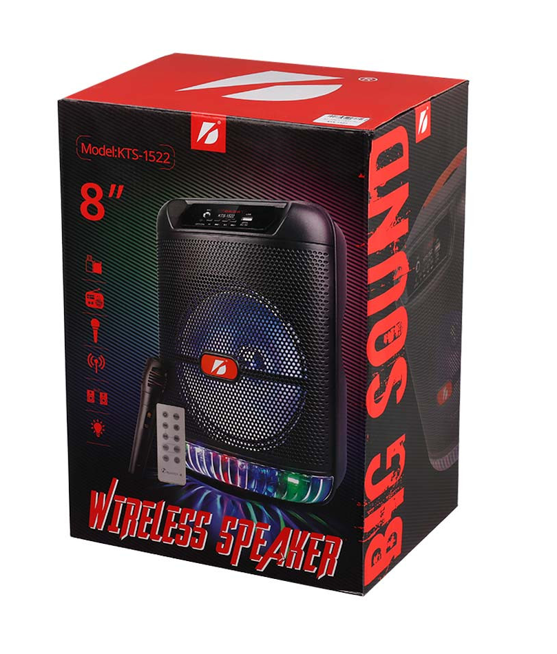 La Cabina Parlante Bluetooth KTS-1522 de 8 pulgadas es ideal para reuniones, karaoke, eventos o simplemente disfrutar de buena música en casa. Con luces LED estilo discoteca, micrófono incluido y sonido potente, convierte cualquier lugar en una celebración.