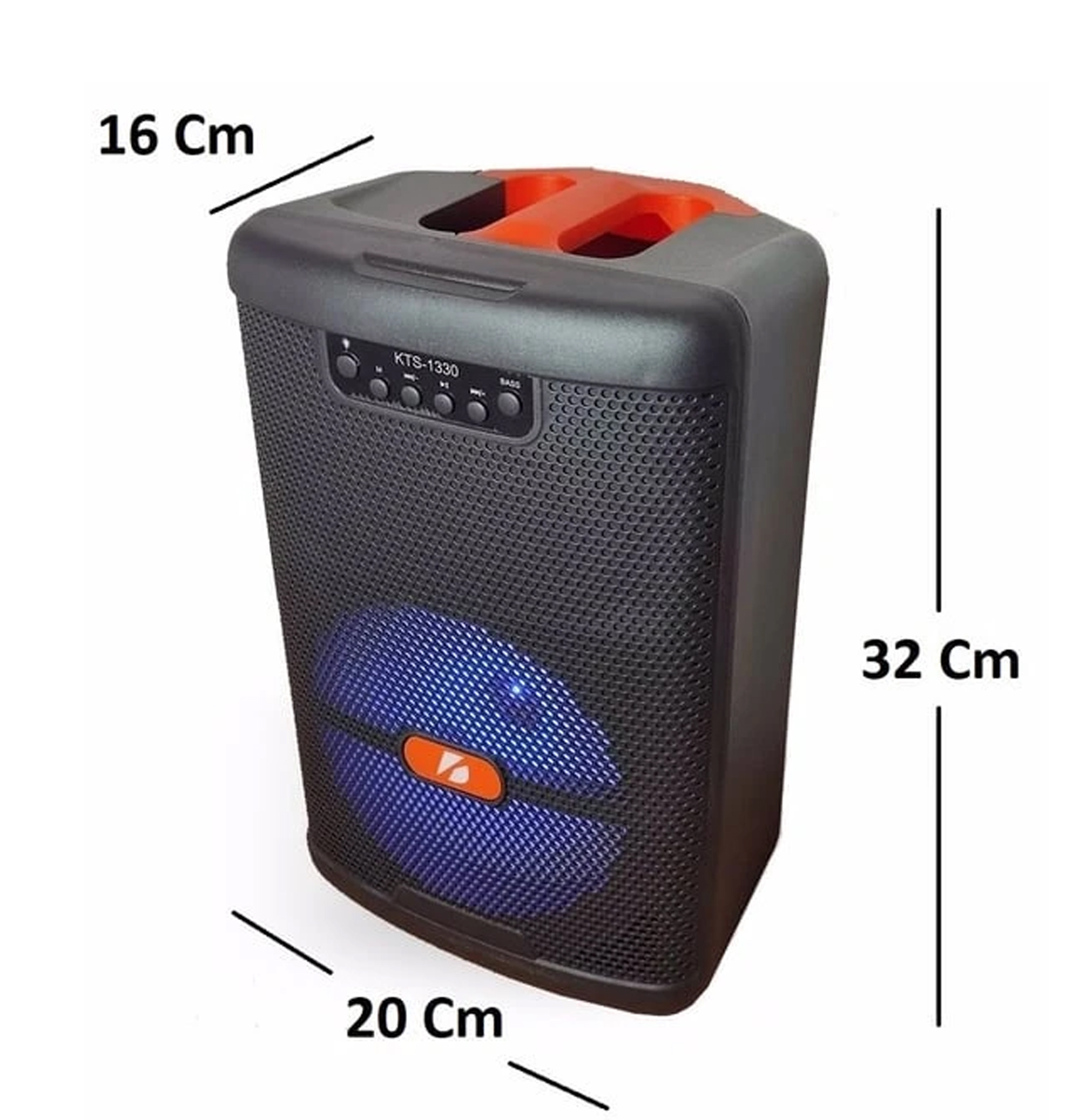 El KTS-1330 es un altavoz portátil Bluetooth con micrófono inalámbrico incluido, ideal para karaoke, reuniones, picnic o simplemente relajarte con tu música favorita 🎶