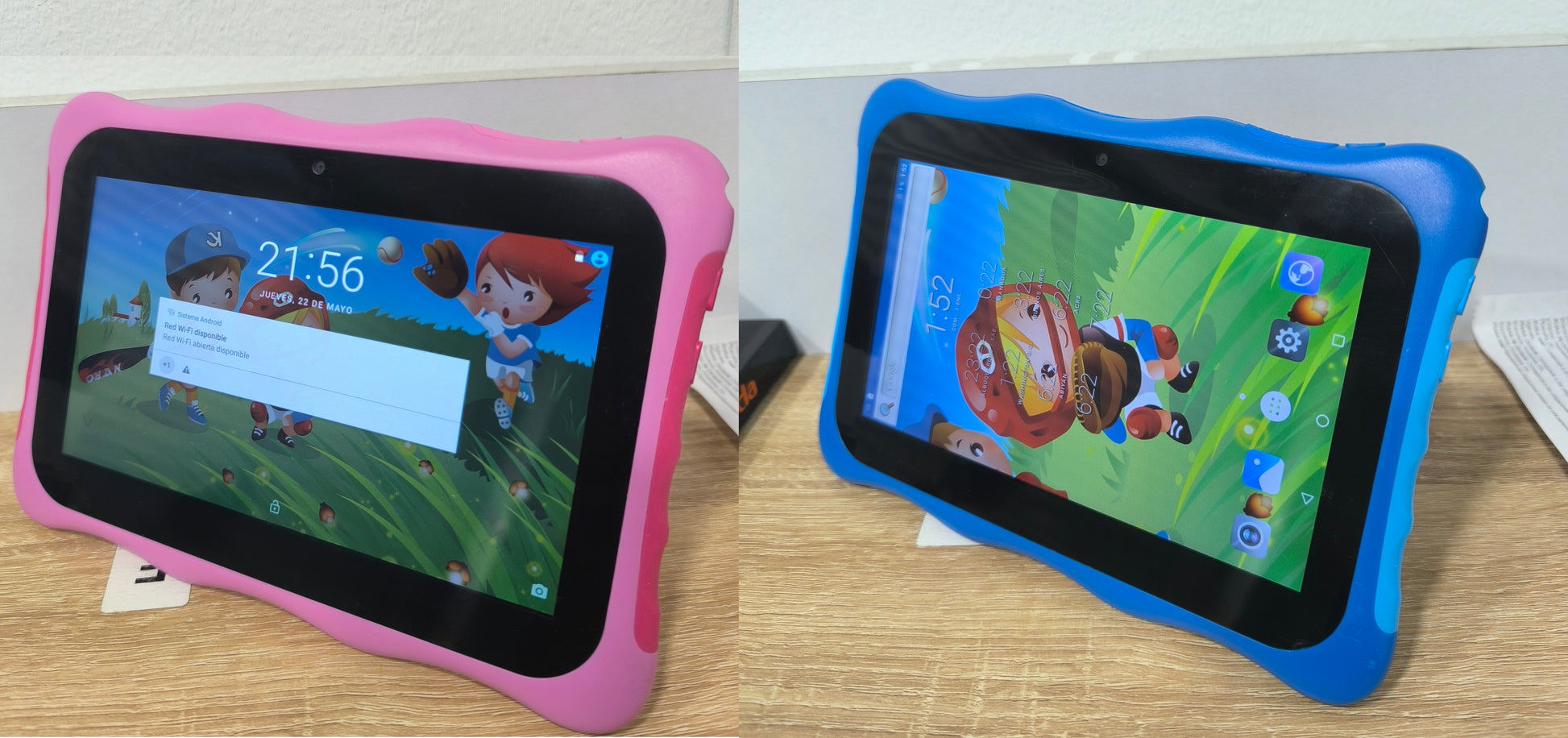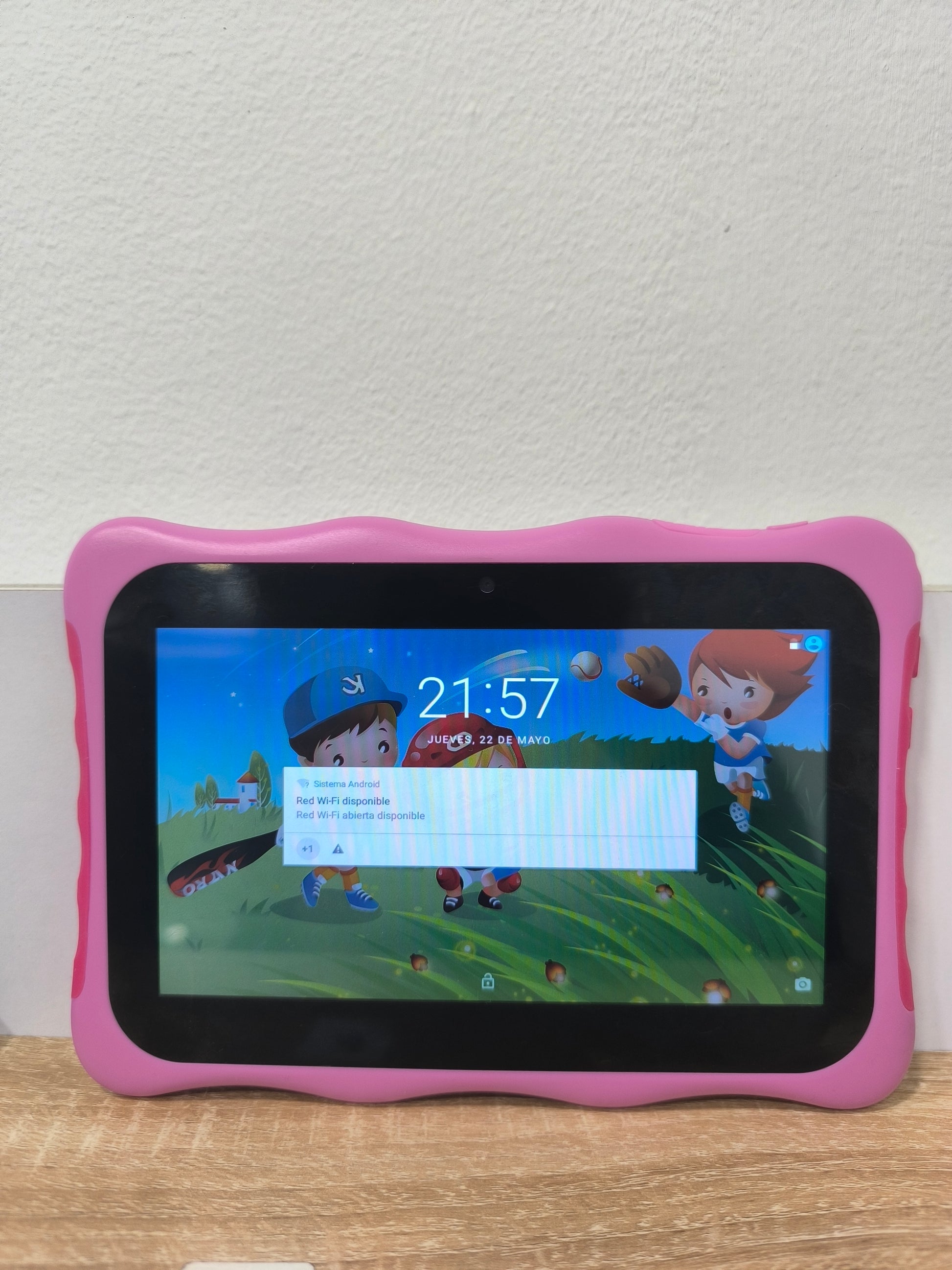 Tablet de 7 pulgadas diseñada especialmente para niños y niñas, con una gran capacidad y resistencia. Ideal para estudiar, ver videos, jugar y aprender de forma divertida y segura.